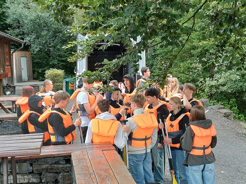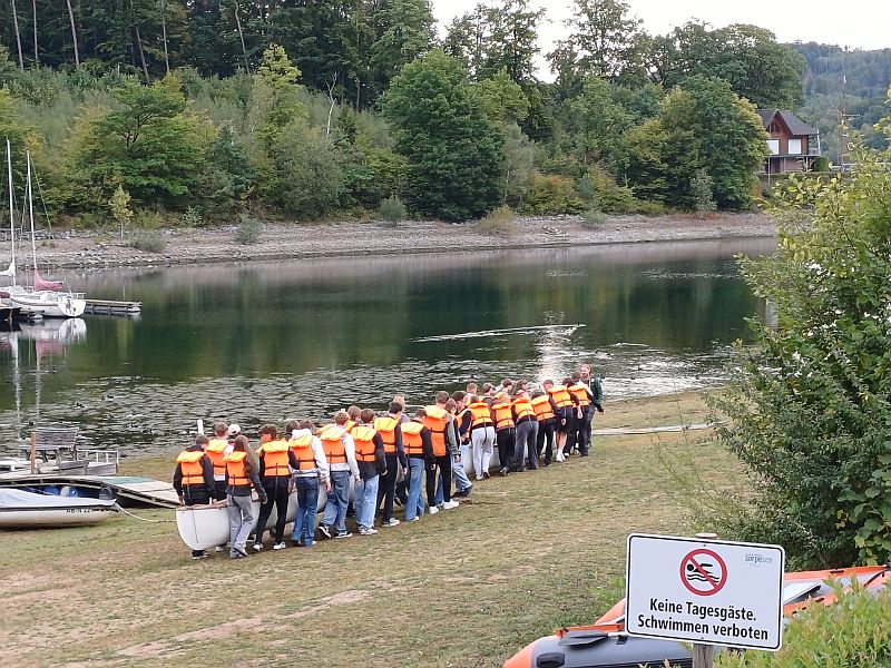 Zunächst wurden wir auf die Kanus verteilt. In jedem Kanu wurde ein Koordinator gewählt, der den Takt zum Paddeln vorgab. Nachdem alle Kanus besetzt waren, ging es auf den See. In der Mitte des Sees machten wir ein Quiz, das die Teamer vorbereitet hatten. Es gab verschiedene Schätzfragen zum Sorpesee, bei denen lustige Antworten zustande kamen. Auf dem Rückweg zum Ufer setzte leider Regen ein, sodass alle Kanuten ordentlich nass wurden.