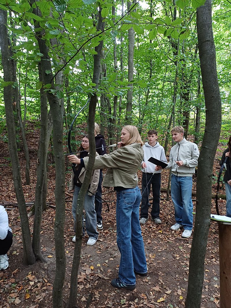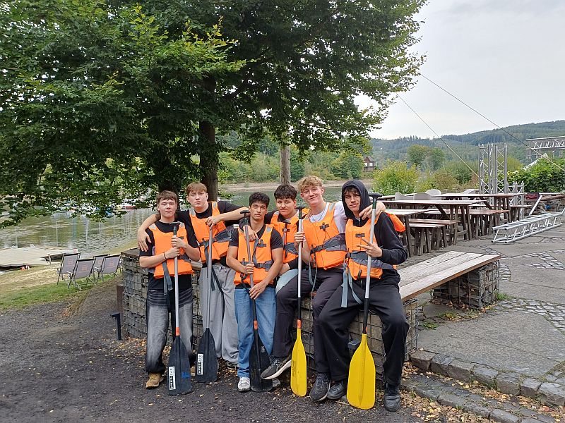 Am Montag, den 08.09.2025, starteten wir unsere Orientierungswoche mit einem Sporttag im Woohoo am Sorpesee. Zu Beginn wurden wir in zwei Gruppen aufgeteilt und begannen mit den Aktivitäten des Tages. Die eine Gruppe startete mit Bogenschießen, während die andere Kanu fahren ging. Beim Bogenschießen schossen wir auf verschiedene Ziele (Kegel, Glocken, Ringe etc.). Durch Treffer erzielten wir Punkte, sodass ein kleiner, lustiger Wettkampf in den Gruppen entstand. Danach machten wir eine kurze Pause, bevor die Gruppen ihre Aktivitäten tauschten.