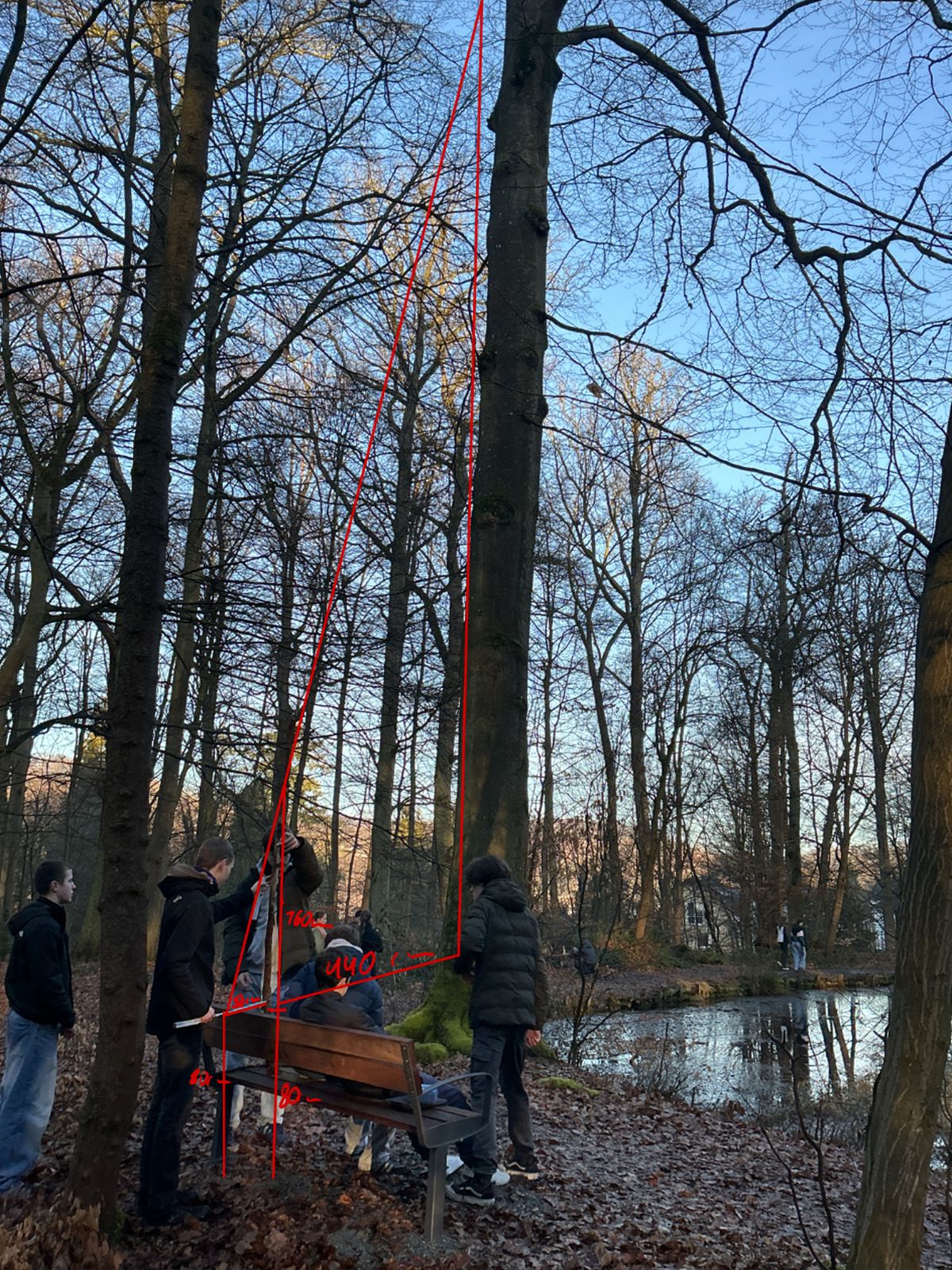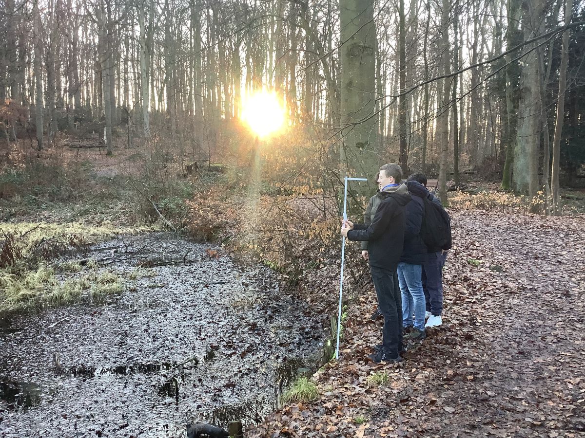 Am Mittwoch, den 25. Februar, sind wir, die Klasse 10b, gemeinsam mit unserem Mathelehrer Herrn Locke in der ersten und zweiten Stunde ins Eichholz zum Kinderteich gelaufen. Das Ziel unseres Ausfluges war es, Mathematik im Umfeld sowie in der Natur anzuwenden.