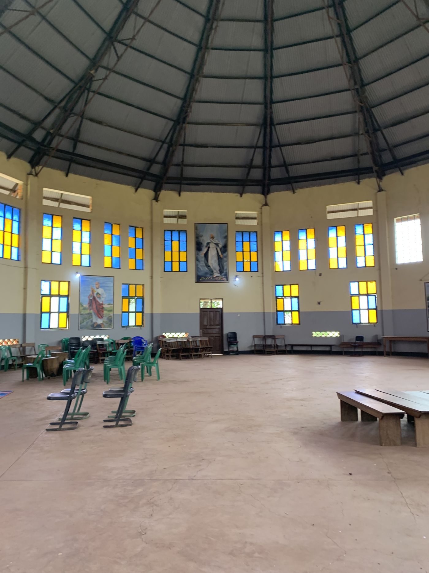 Wie bei uns gibt es auf dem Gelände auch eine Kapelle. Die Kapelle ist groß, hoch und viel bunter als die Klassenzimmer. Hier wird, wie bei uns auch, jeden Monat eine gemeinsame Messe gefeiert, die von den Schülerinnen und Schülern selbst vorbereitet wird. Der Schulhof besteht aus einer großen Wiese mit einem Volleyballnetz und zwei Fußballtoren, damit sich die Schülerinnen und Schüler austoben können.