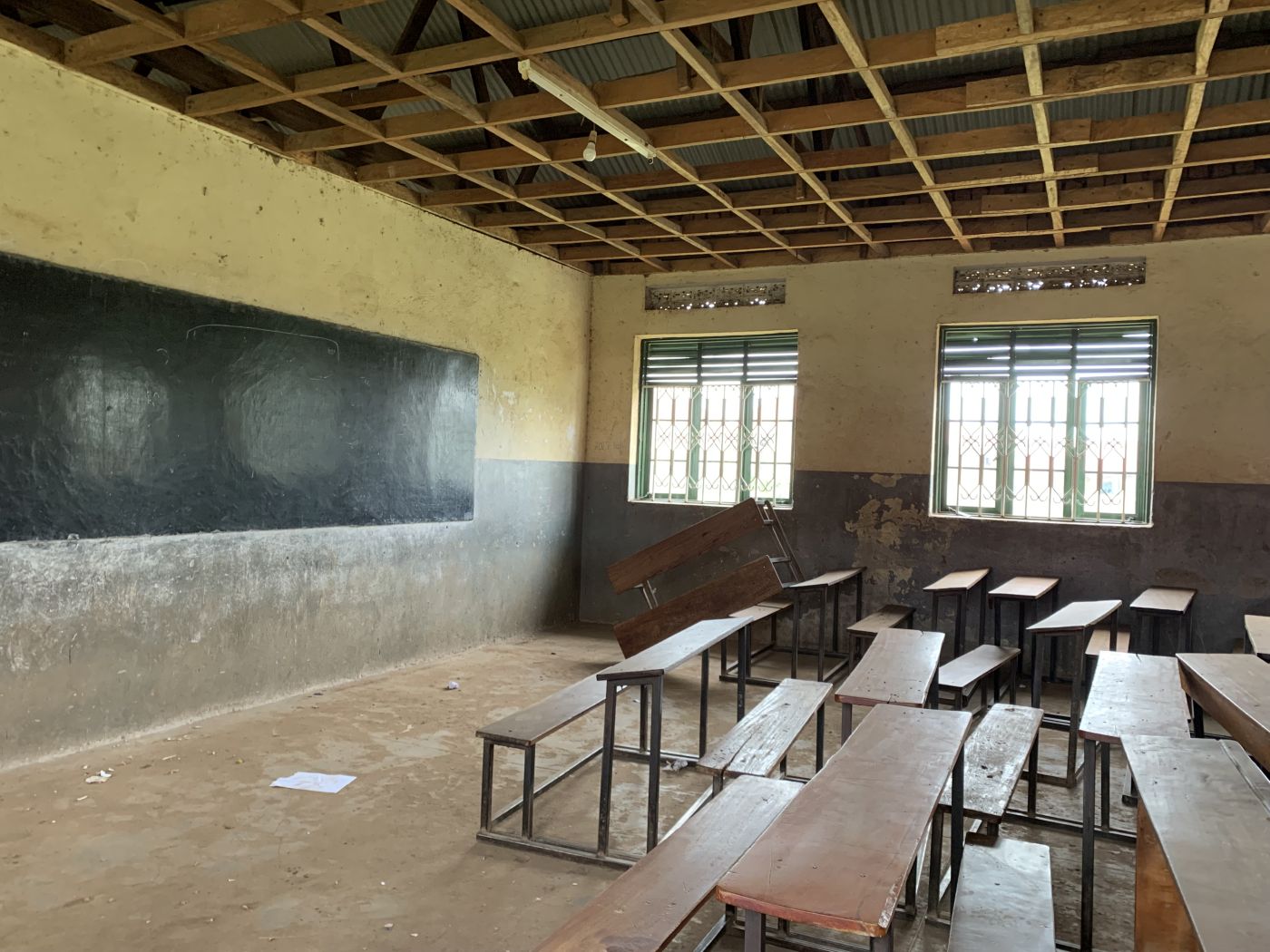 Die Klassenräume sehen im Vergleich zu unserer Schule sehr einfach und relativ leer aus. In einem Klassenzimmer befinden sich mehrere Bänke mit länglichen Tischen und vorne eine Tafel, das war es. In einer Klasse sind ungefähr 40 bis 60 Schülerinnen und Schüler untergebracht.