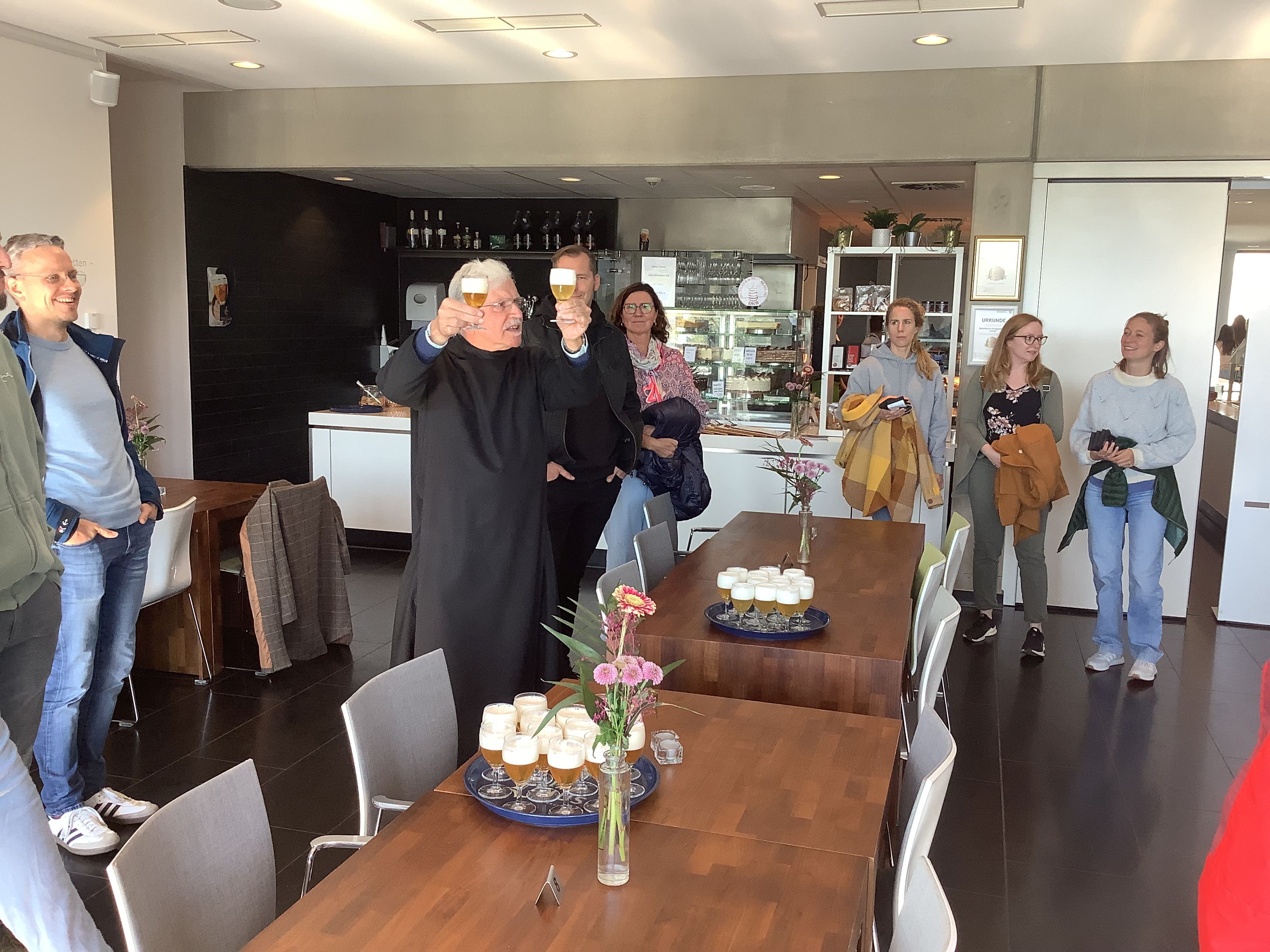 Ab 11.30 Uhr bestand außerdem die Möglichkeit zu Spaziergängen über das Gelände, zum Besuch im Klosterladen oder zu einer Bierprobe in der Abteigaststätte. Dabei stellte Pater Werner das in der Abtei entwickelte Klosterbier Pater Linus vor. Benannt nach dem ersten Prior, der dem Kloster wichtige Orientierung gab, zeichnet sich das obergärige Spezialbier durch eine zweite Flaschengärung aus und wird deshalb auch als „Champagner-Bier“ bezeichnet. Für das Kollegium war es eine leckere Kostprobe klösterlicher Brautradition.