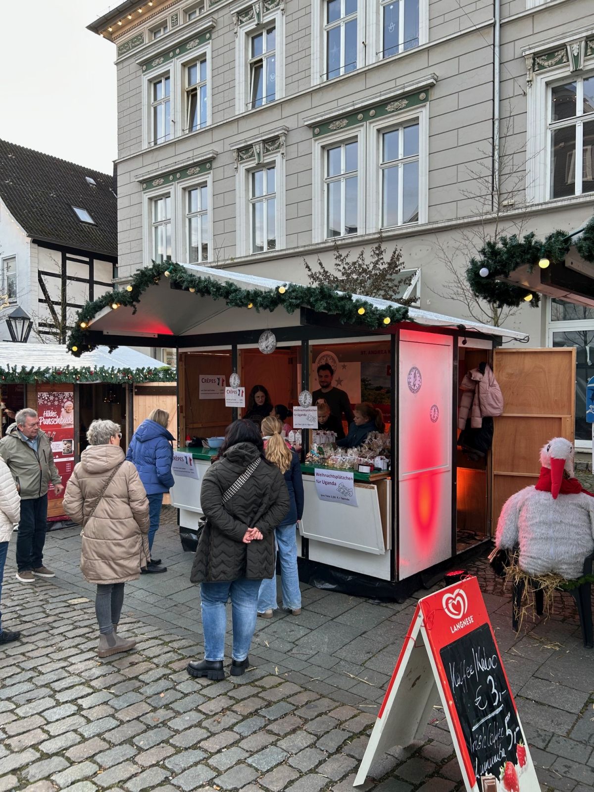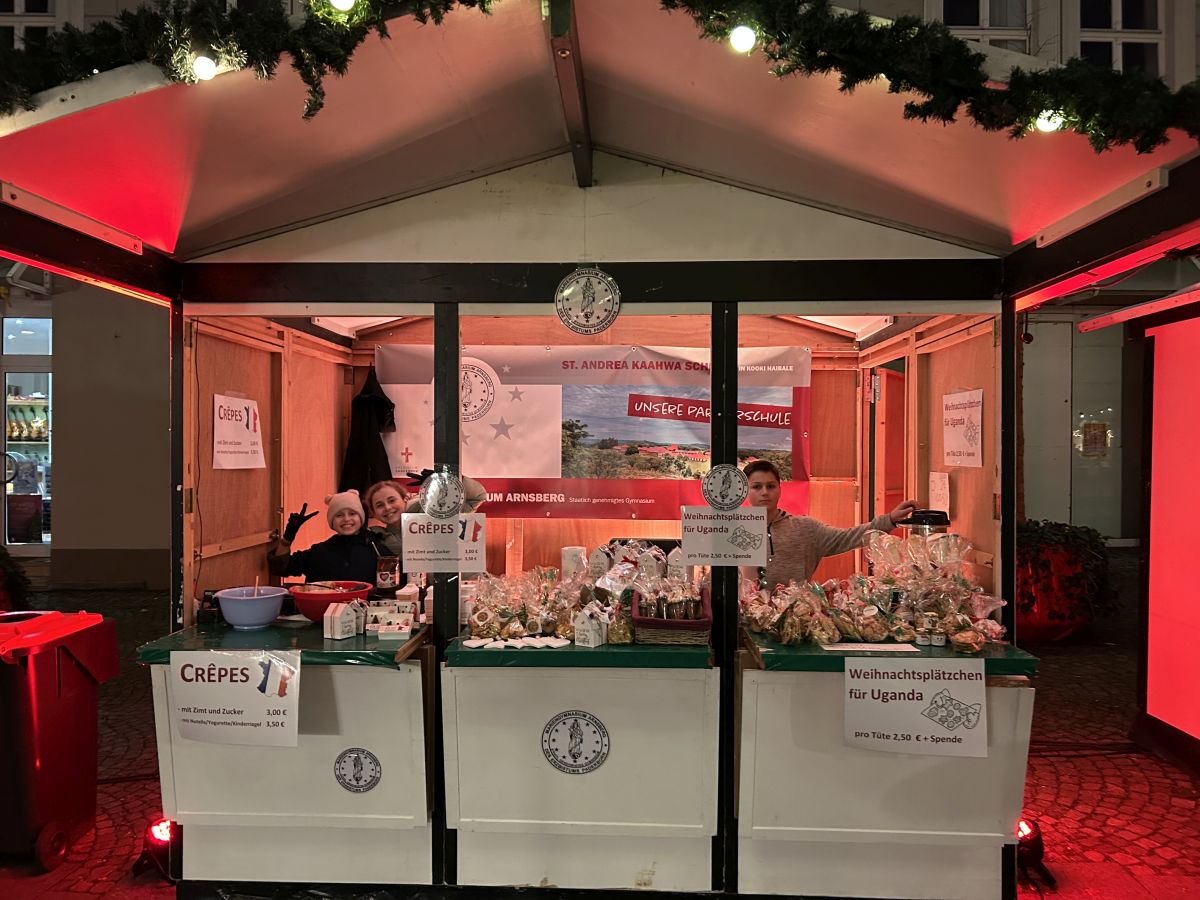 Auch in diesem Jahr war das Mariengymnasium Arnsberg wieder für den guten Zweck auf dem Arnsberger Weihnachtsmarkt vertreten. Dank zahlreicher Keksspenden aus der Schulgemeinschaft und dem fleißigen Verkauf von Crêpes kam an vier Tagen ein stolzer Spendenerlös von 2.300 Euro zusammen.