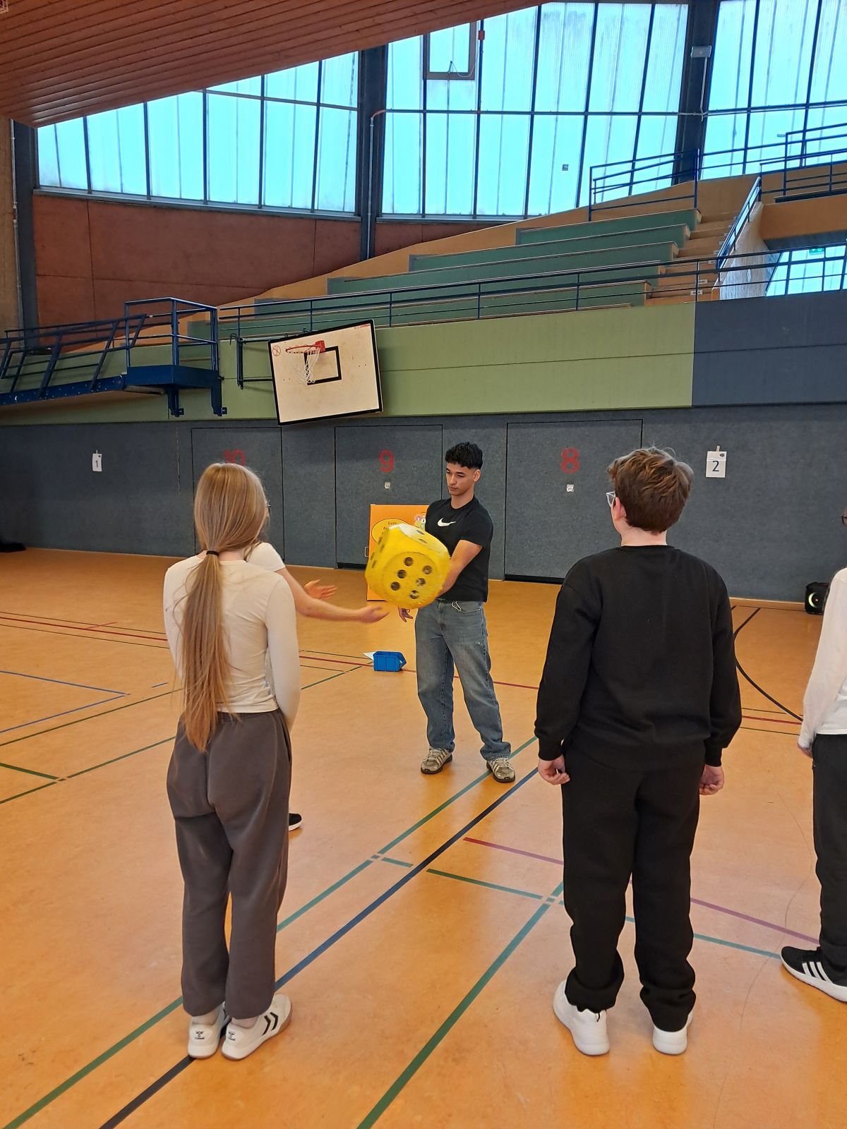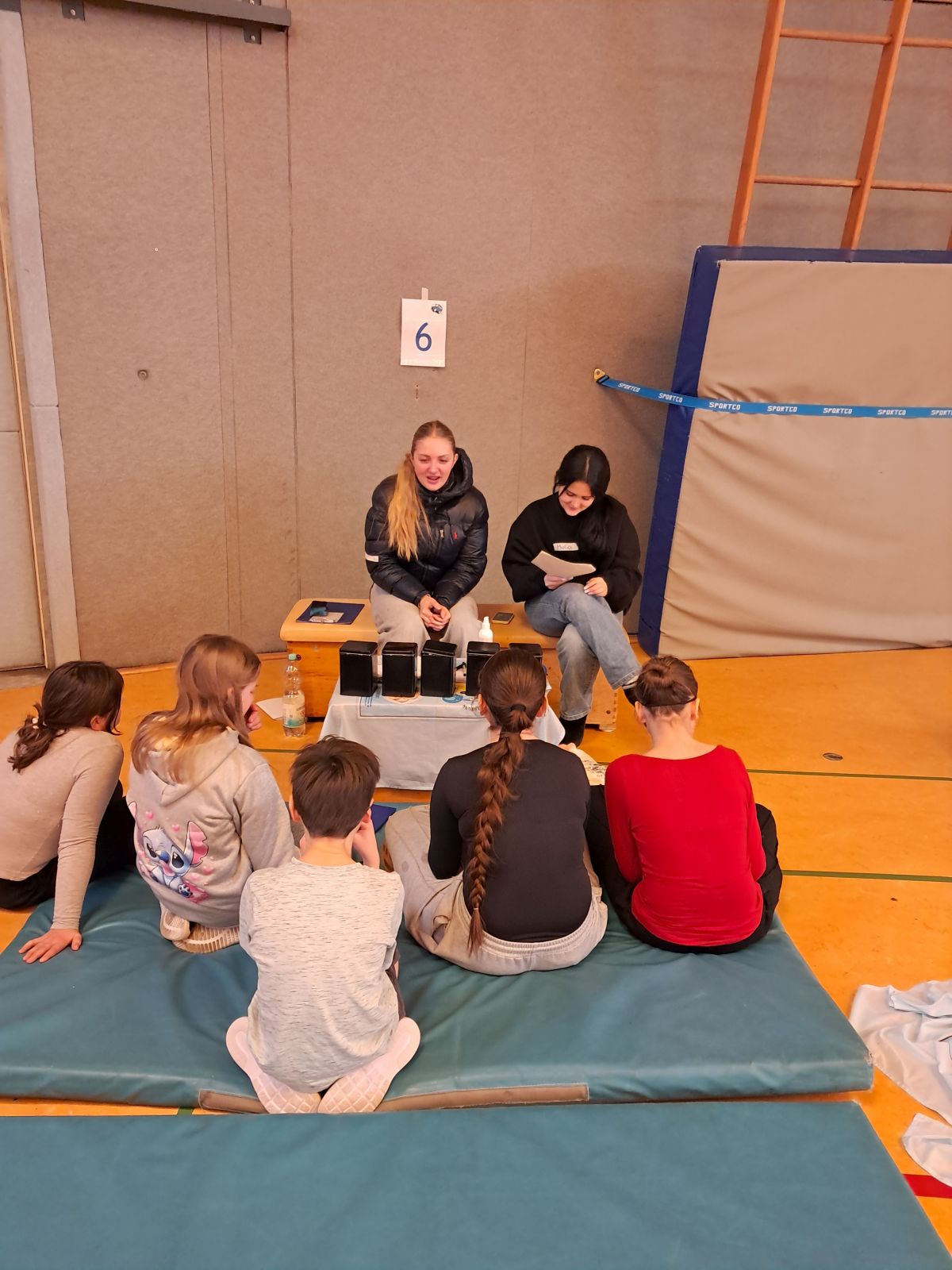 Die Schülerinnen und Schüler der Einführungsphase sowie weitere Helferinnen und Helfer des Berufskollegs am Eichholz übernahmen den Aufbau der Stationen und begleiteten die Gruppen durch die einzelnen Angebote. Mit ihrem engagierten Einsatz trugen sie maßgeblich zu einem reibungslosen Ablauf des Projekttages in der Rundturnhalle bei. Gleichzeitig sammelten die Beteiligten praktische Erfahrungen in Organisation, Anleitung und Verantwortungsübernahme.