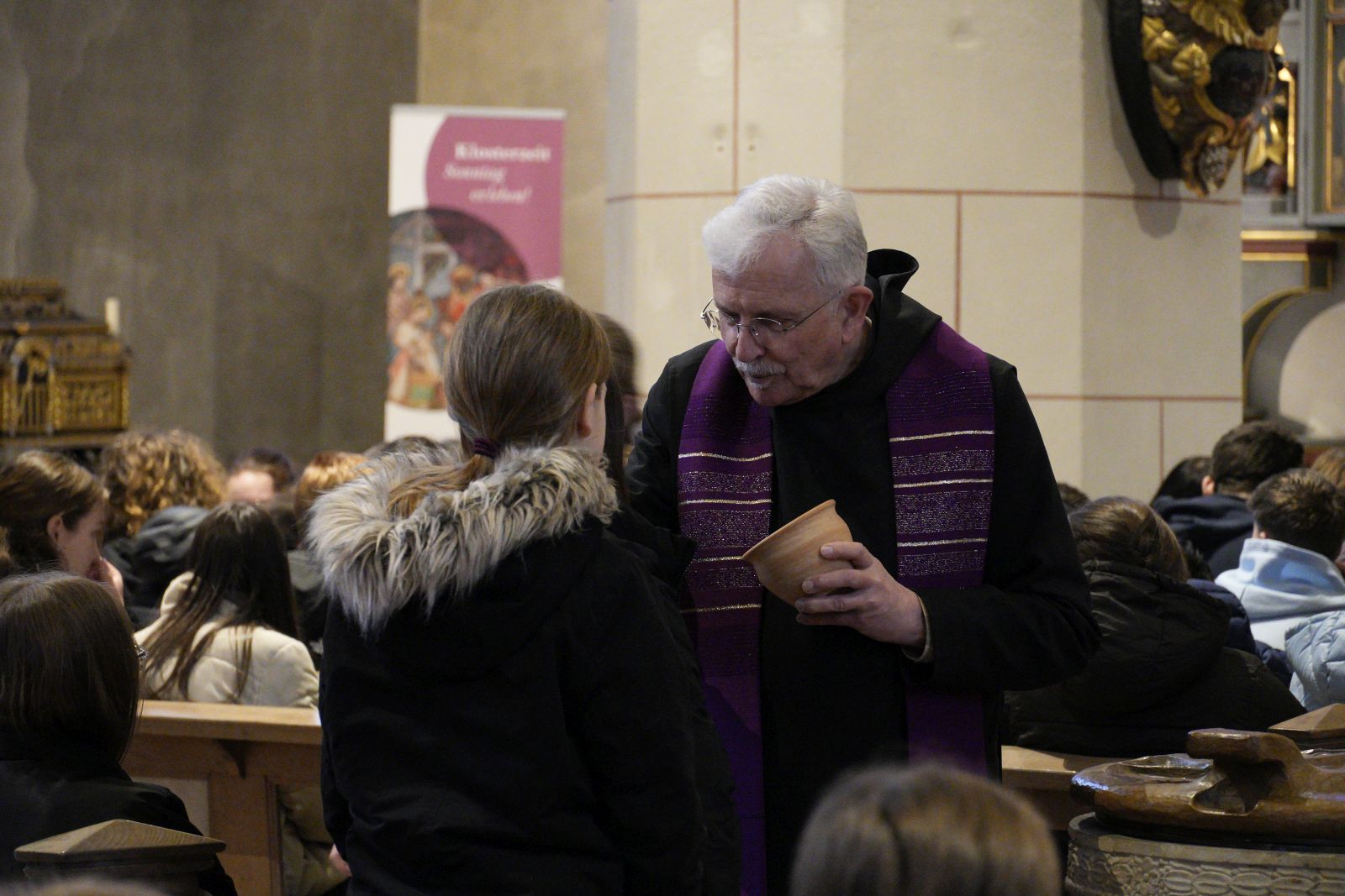 Unter dem Thema „Sich in den Blick nehmen“ haben die Schülerinnen und Schüler am Aschermittwoch in drei Gottesdiensten in der Propstei-Kirche die Fastenzeit begonnen. So waren sie eingeladen, sich selbst in den Blick zu nehmen und sich zu überlegen, was sie in der Fastenzeit ändern möchten, um Jesu Botschaft besser zu folgen und gut zu sich selbst zu sein.