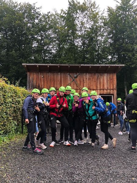 Natürlich darf bei keinem Besuch im Mosaik das Klettern im Hochseilgarten fehlen. Für einige von uns waren die schwindelerregenden Höhen eine echte Überwindung, bei der viel Mut und Vertrauen in die eigene Person sowie die des Teams gefragt waren. Highlights im Hochseilgarten sind natürlich die Seilbahn und die Riesenschaukel.