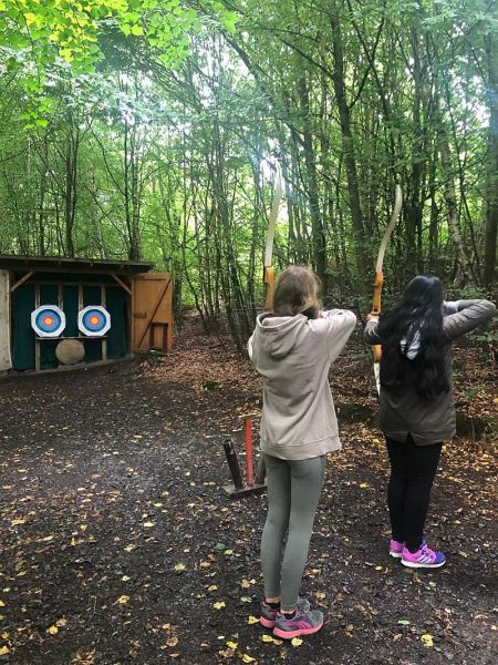 Beim Bogenschießen lernten wir nicht nur den richtigen Umgang mit Pfeil und Bogen, sondern ebenso eine korrekte Körperhaltung und Körperspannung zu wahren.