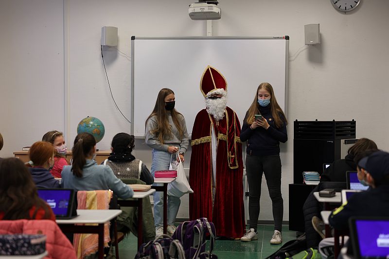 Am 6. Dezember besuchte uns wie jedes Jahr wieder der Nikolaus, dieses Mal gespielt von Benita Golz, gelesen von Anna Schreiber und unterstützt von Hanna Telgenbüscher. Die drei sind durch die Klassen gezogen, haben eine weihnachtliche Geschichte vorgelesen, Schokoladennikoläuse verteilt und rundherum Freude und Weihnachtsstimmung verbreitet.