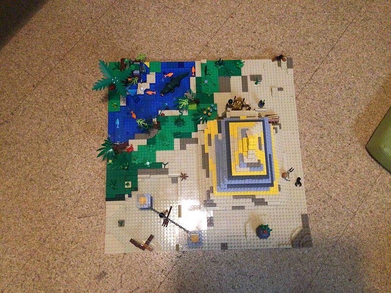 Passend zum Thema „Das Alte Ägypten" hat mein Freund aus Lego eine Sphinx gebaut, während ich eine Landschaft mit einer Pyramide am Nil gestaltet habe.