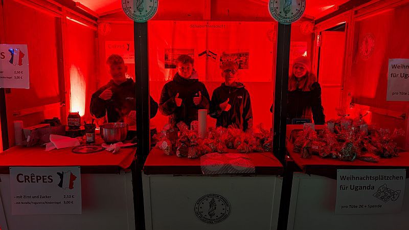 Vom 8. bis zum 10. Dezember verkauften verschiedene Klassen auf dem Arnsberger Weihnachtsmarkt Plätzchen und Crêpes für unsere Partnerschule in Uganda.