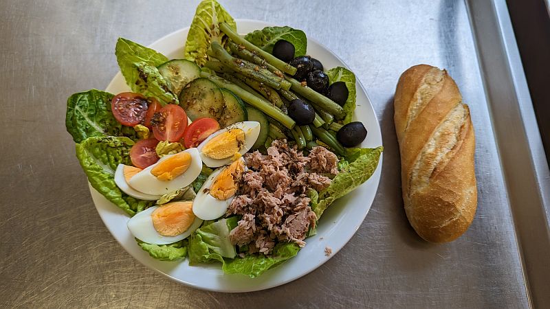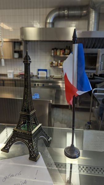 Am Sonntag, den 22. Januar, war der 60. Jahrestag der Unterzeichnung des Élysée-Vertrages - eines Freundschaftsvertrages zwischen Frankreich und Deutschland. Dies wurde einen Tag später, am Montag, auch am Mariengymnasium gefeiert: Neben französischer Musik in den Pausen und Informationen zu den deutsch-französischen Beziehungen gab es in der Caféteria dazu auch ein besonderes Menü: In den kleinen Pausen wurden Crêpes und kleine Baguettes angeboten, als Mittagessen gab es Nizza-Salat.