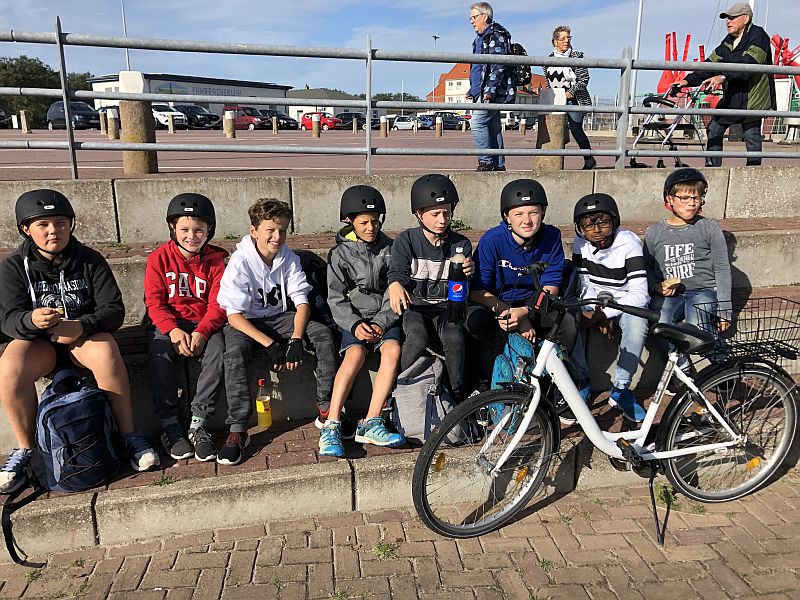 Nach dem Aufstehen gingen wir zum Fahrradverleih und liehen uns Fahrräder. Der Verleiher war sehrwitzig, da er jedem von uns einen lustigen neuen Namen gab. So hießen wir auf einmal Herbert, Fridolin, Wilma und Olga! Anschließend haben wir die Insel mit unseren Fahrrädern erkundet. Wir fuhren zum Hafen, zum Leuchtturm und zur „weißen Düne“ an den Strand. Dort haben wir gechillt, einen Sandburgenwettbewerb und mit den Füßen das Meer unsicher gemacht. Abschließend gab es für jeden ein Eis und es ging zurück ins Haus Klipper, wo zum Abschluss ein bunter Abend und die Siegerehrung der Norderney-Rallye auf uns wartete.