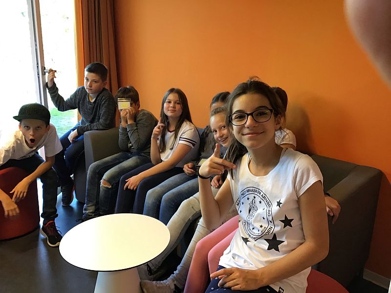 Als wir dann ankamen, war das ein ganz schönes Durcheinander, weil eine Schülerin ihren Koffer vorübergehend verloren hatte. Schließlich stiegen wir in einen Bus ein, der uns zur Jugendherberge fuhr.