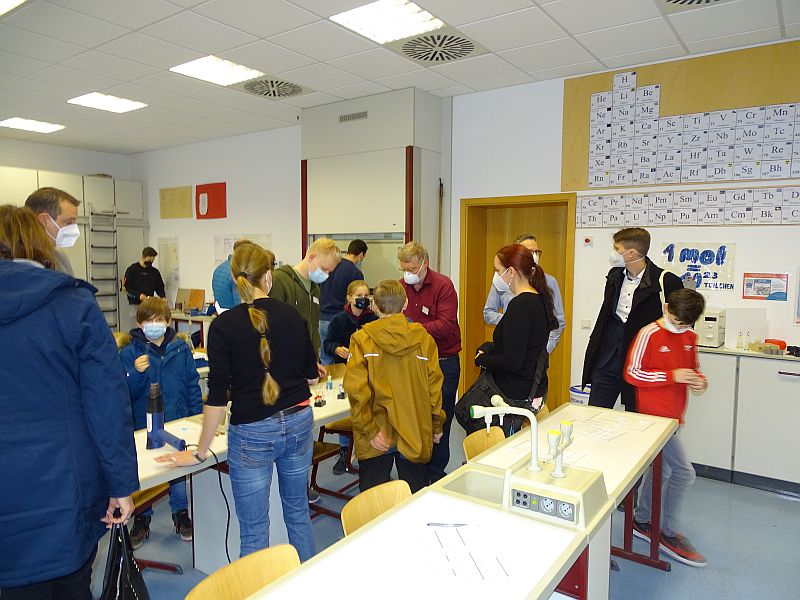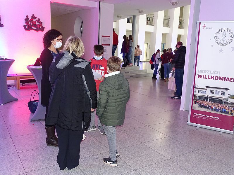 An vielen Stationen und auch durch persönliche Führungen konnten die Gäste im Rahmen von Mitmachaktionen erleben, wie bunt, vielseitig und spannend das Schulleben am Mariengymnasium ist. Im Chemie- und im Physikraum konnten unsere Gäste diverse naturwissenschaftliche Experimente ausprobieren. In der Sporthalle lud ein herausfordernder Parcours zum Klettern ein.
