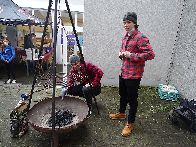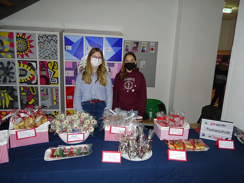 Kulinarisch wurden unsere Gäste durch viele Schülerinnen und Schüler versorgt, die u.a. selbstgebackene Plätzchen verkauften, am Grill Bratwürstchen und in Zelten verschiedene Crêpes-Variationen anboten. Auch in der Cafeteria konnten sich die Gäste stärken und dabei die hellen und modernen Räumlichkeiten wahrnehmen. Einen Teil des Erlöses erhält unsere Partnerschule in Uganda.