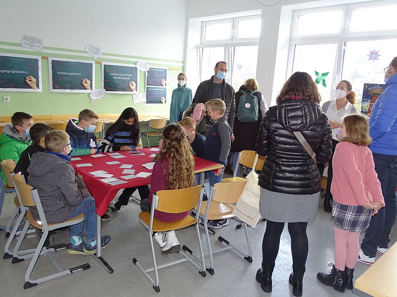 Die Gäste besuchten auch das neu gestaltete Selbstlernzentrum, in dem viele Kinder gerne ihre Zeit verbringen. Sie machen dort positive Gemeinschaftserfahrungen und erhalten beim Lernen Unterstützung von Fachlehrerinnen und Fachlehrern, bevor sie z. B. eine der zahlreichen AGs besuchen.
