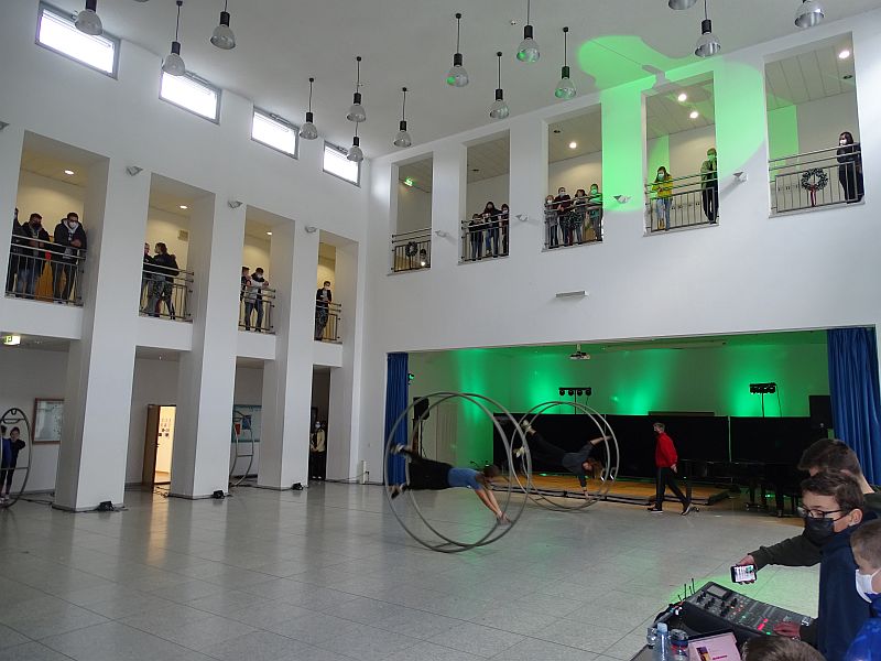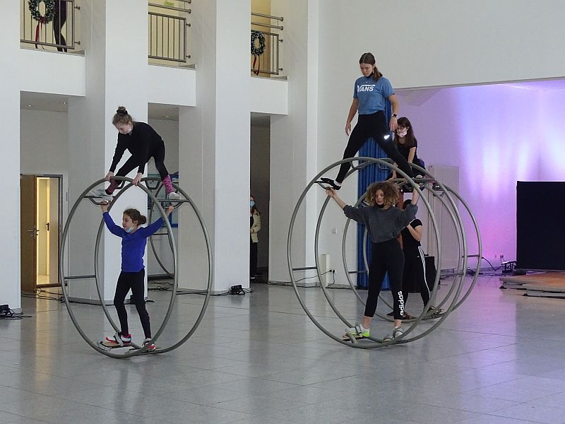 Spektakulär war die Rhönrad-Vorstellung im Forum des Mariengymnasiums. Wir sind sehr stolz auf unsere Fünftklässlerinnen, die bereits jetzt mutig und sicher ihr hervorragendes Können unter Beweis stellen konnten.