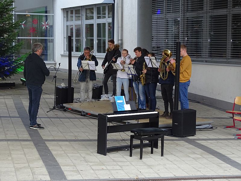 Unser Musiklehrer Herr Keller bot gemeinsam mit verschiedenen Lerngruppen, die auch durch Lehrende verstärkt wurden, eine angenehme musikalische Unterhaltung und stimmte die Besucher auf die Adventszeit ein.