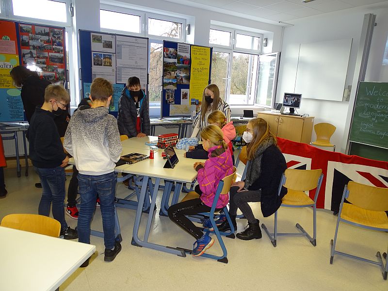 Im Computerraum stellen Schülerinnen und Schüler ihre selbstprogammierten Spiele und Roboter vor. Die Besucher erhielten dort auch Informationen über das Fach "Informatische Bildung", das bereits in der Jahrgangsstufe 5 grundlegende digitale Kompetenzen vermittelt.