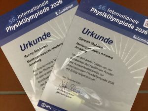 Das Mariengymnasium freut sich sehr darüber, seinen Schüler Gereon Mahlich aus der 10c erneut für seine gelungene Teilnahme an der Physikolympiade 2026 mit einer Urkunde auszeichnen zu dürfen.